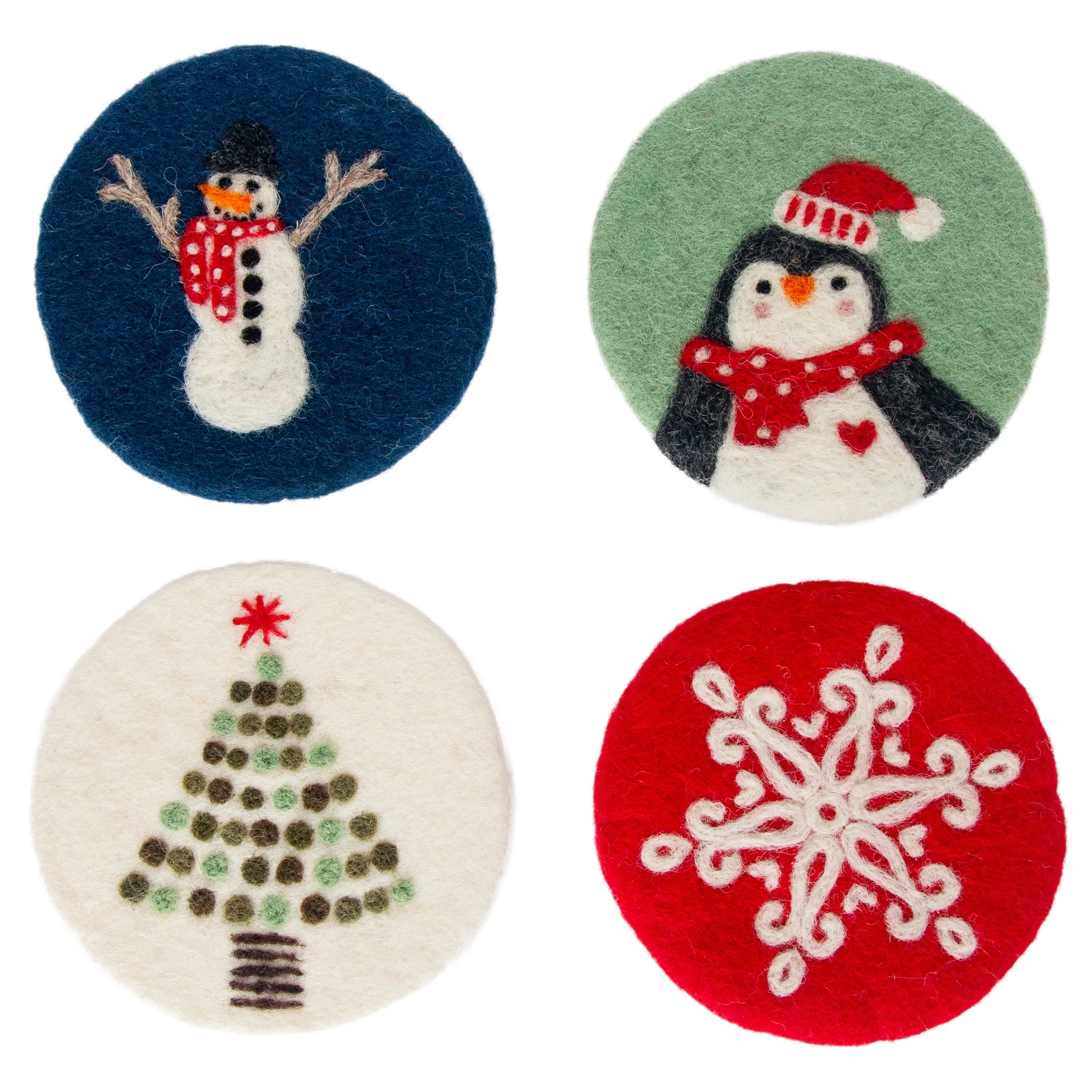 Festive Holiday Felt Coasters — Set of 4