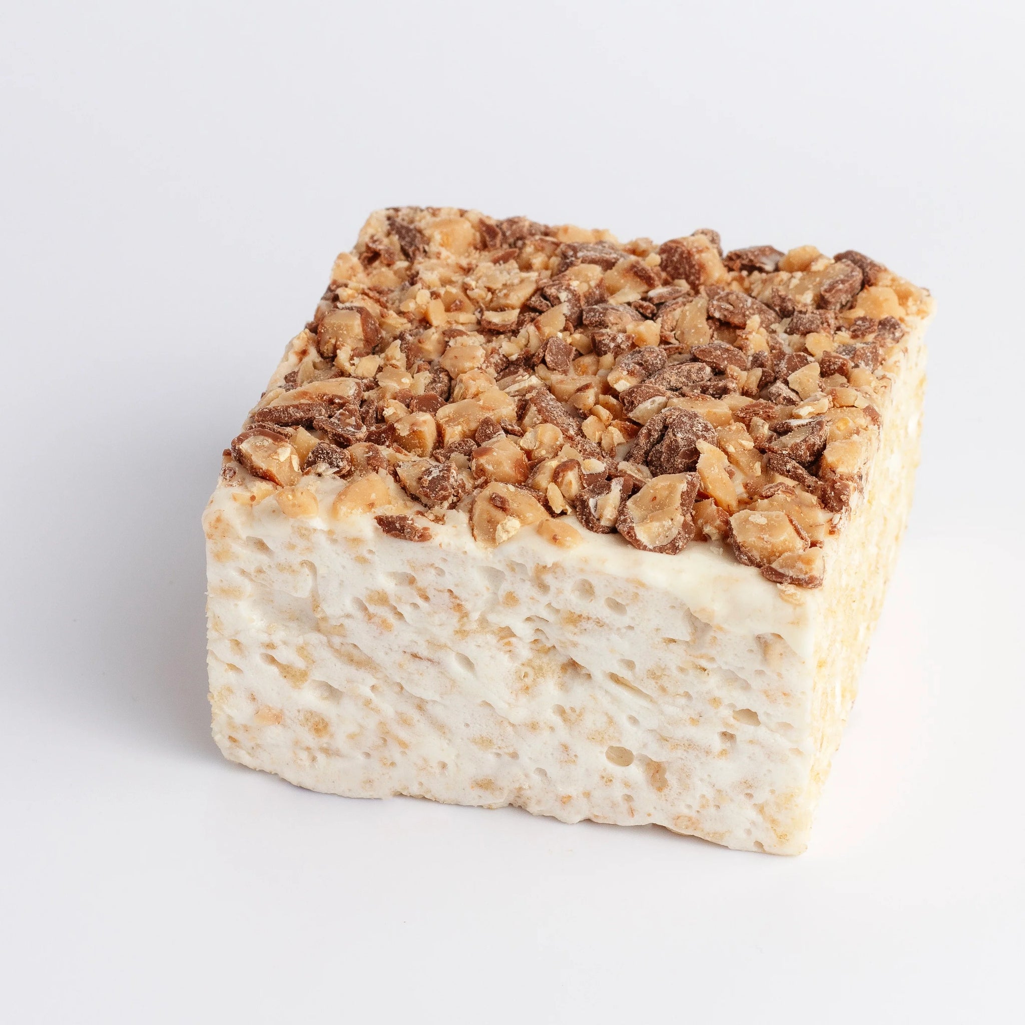 Get ready for a crispy treat that means serious business! The Chocolate Toffee Crunch Crispy Treat is a sweet symphony of textures, topped with buttery toffee bits and chocolatey crunch pieces that take your marshmallow square from classic to crave-worthy.
