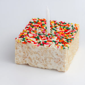 Make their special day even sweeter with our Happy Birthday Crispy Treat with Candle! This jumbo marshmallow crispy square is topped with a generous layer of colorful rainbow sprinkles, wrapped with a festive “Happy Birthday” label, and comes complete with a birthday candle—because every celebration deserves a little sparkle.