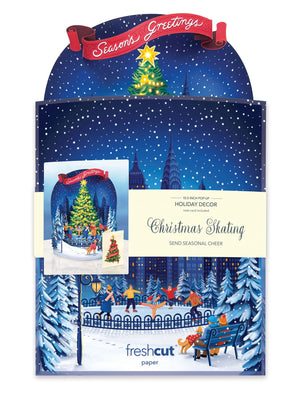 Pop-up holiday décor display with skating scene