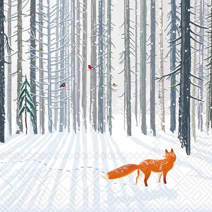 Step into a quiet winter fairytale with these Filou Cocktail Napkins 🦊❄️ A snowy forest of tall, misty trees sets the scene while a bright little fox pads across the fresh white ground—an instant pop of warmth against the cool, serene backdrop. Tiny birds tucked among the branches add a whimsical, storybook touch. Perfect for winter dinner parties, après-ski snacks, or holiday gatherings when you want your table to feel cozy, calm, and a little enchanted.
