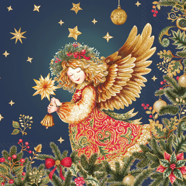 Make your holiday hosting feel downright magical with these Opulent Angel Cocktail Napkins ✨👼 Set against a deep midnight-blue sky, a golden-winged angel drifts through lush evergreen boughs, surrounded by shimmering stars, ornaments, and rich seasonal greenery. With ornate red-and-gold detailing, a glowing star wand, and a softly vintage, storybook feel, these napkins bring instant elegance to cocktail hour—perfect for Christmas soirées, candlelit dinners, and celebrations where you want the table to sparkle.