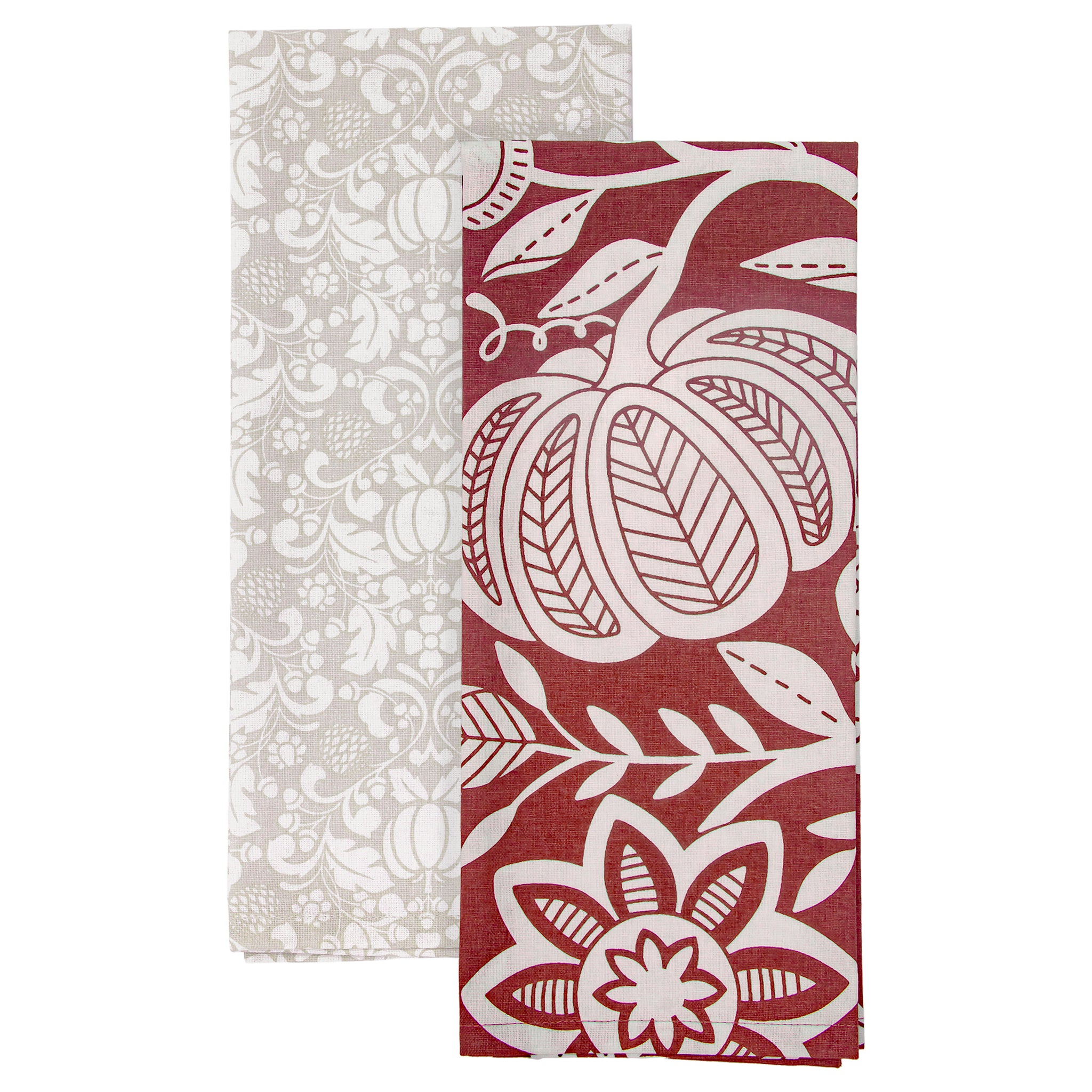 • One brick-red towel with oversized pumpkin/botanical artwork