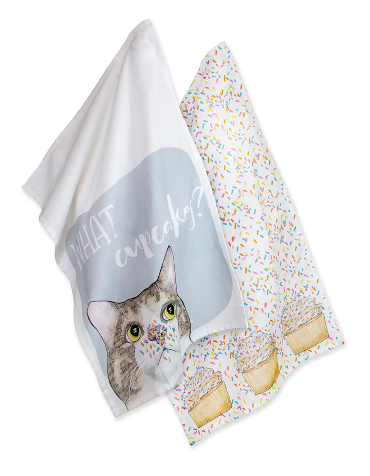 Cupcake Cat Tea Towels Set of 2