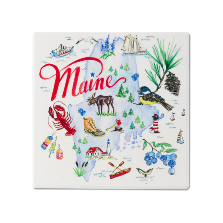 Perfect for coffee tables, desks, or anywhere you want a dash of New England nostalgia. Whether you're a proud local or a fan from afar, this coaster is a delightful way to protect your surfaces and celebrate the magic of Maine.