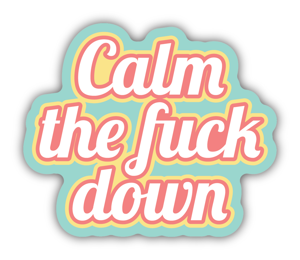 The "Calm The Fuck Down" Sticker is your sassy little reminder to breathe deep, chill out, and stop spiraling—in the most colorful way possible. Dressed in sweet pastels with bold retro flair, this sticker serves up zen with a side of WTF energy.