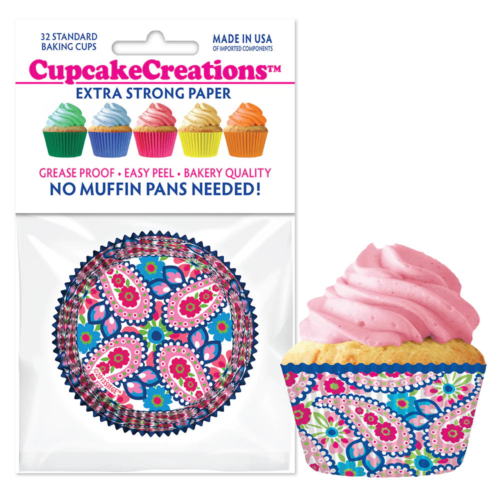 Add a splash of boho flair to your baking with these vibrant pink paisley baking cups! Featuring intricate floral and paisley patterns in bold shades of pink, blue, and green, they’re perfect for birthdays, summer parties, or any colorful celebration.