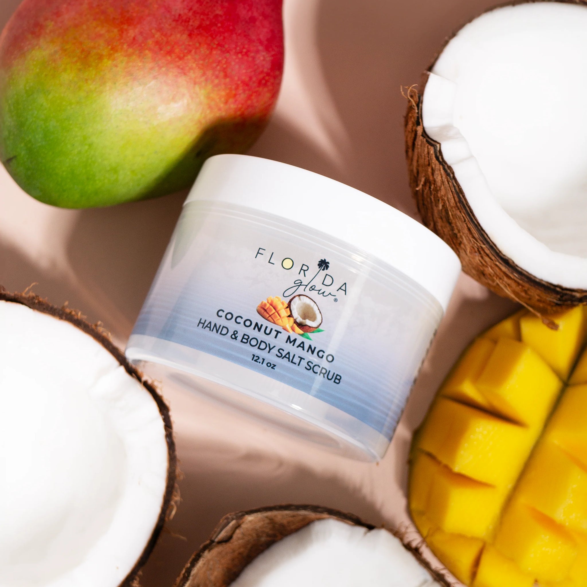 Florida Glow Salt Scrub is a luxurious blend of fine sea salt, nourishing coconut oil, and omega-3 rich marine algae. This rejuvenating formula gently exfoliates while deeply hydrating your skin, leaving it smooth, soft, and glowing.