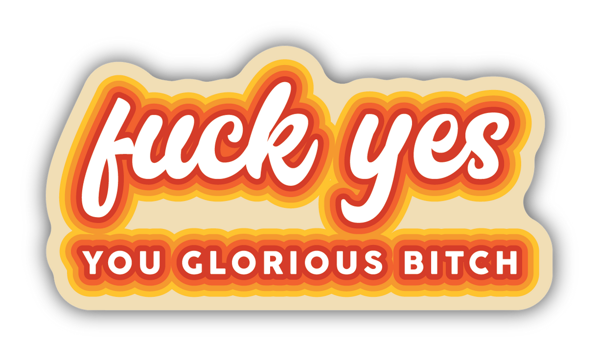 The "Fuck Yes You Glorious Bitch" Sticker is your loud, proud, profanity-powered hype badge. With bold retro vibes and fiery sunset colors, this sticker doesn’t whisper self-love—it screams it. Whether you're slaying your goals, owning your chaos, or just vibing with main character energy, this one’s for you, babe.