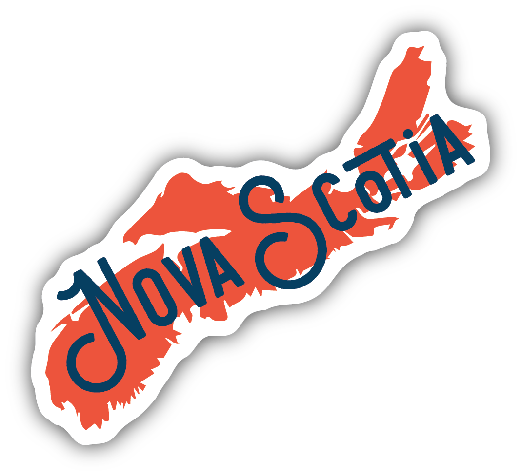 This dynamic and stylish design captures the rugged beauty of Nova Scotia in a bold, eye-catching way! The province's unmistakable shape is highlighted in a warm red-orange hue, outlined in black and white for a striking contrast. The deep blue typography flows beautifully across the design, with an elegant, nautical-inspired script that nods to Nova Scotia’s rich maritime heritage. Whether you're a proud Bluenoser or just love the East Coast charm, this sticker is a perfect way to show off your Nova Scotia pride!
