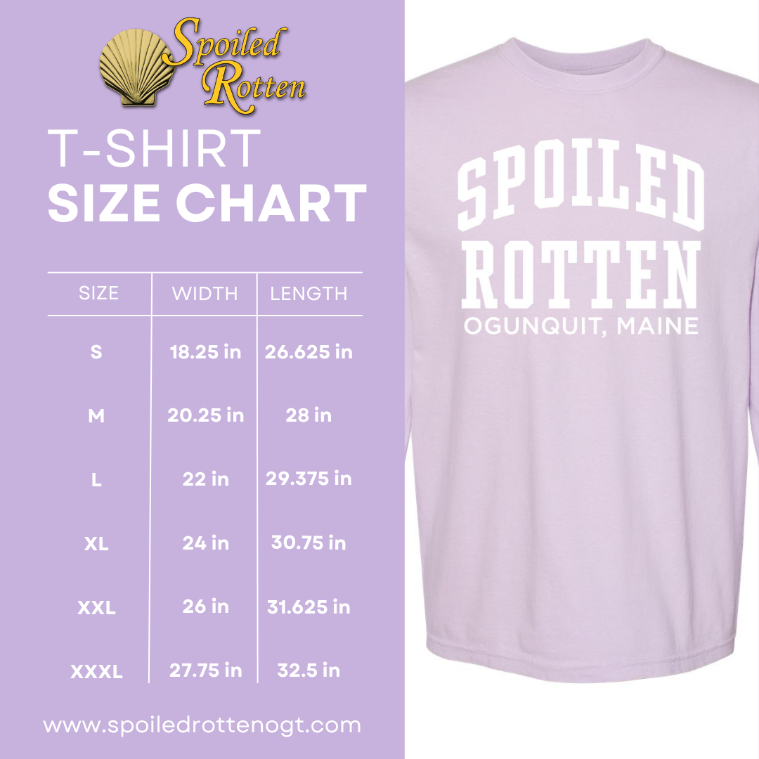 Show off your playful side with the Spoiled Rotten Orchid Tee — the ultimate souvenir or cheeky gift from Ogunquit, Maine! This soft lavender (orchid) short-sleeve shirt is made for those who know they deserve the best (and aren’t afraid to say it).