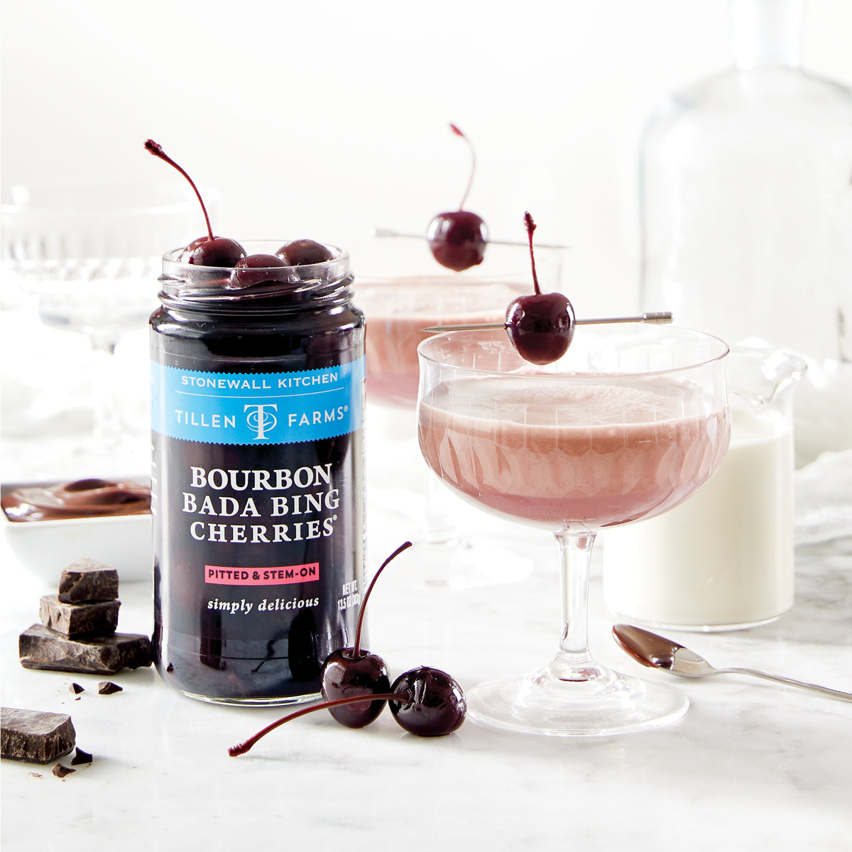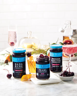 A splash of warm, spicy bourbon turns these Northwest-grown, pitted and stem-on Bada Bing Cherries® into the perfect bourbon cocktail cherries. Add our bourbon cherries to decadent desserts, savory cheese plates and, of course, your favorite Manhattan or Old Fashioned. Rich in flavor but not too sweet, our bourbon soaked cherries are also delicious snacked straight from the jar.